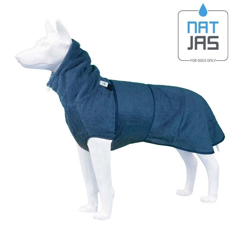 Een zeer goede natjas voor de hond gemaakt van degelijk materiaal. Dexter en ik zijn er superblij mee. Hond is lekker droog na een tijdje en geen natte zetel meer